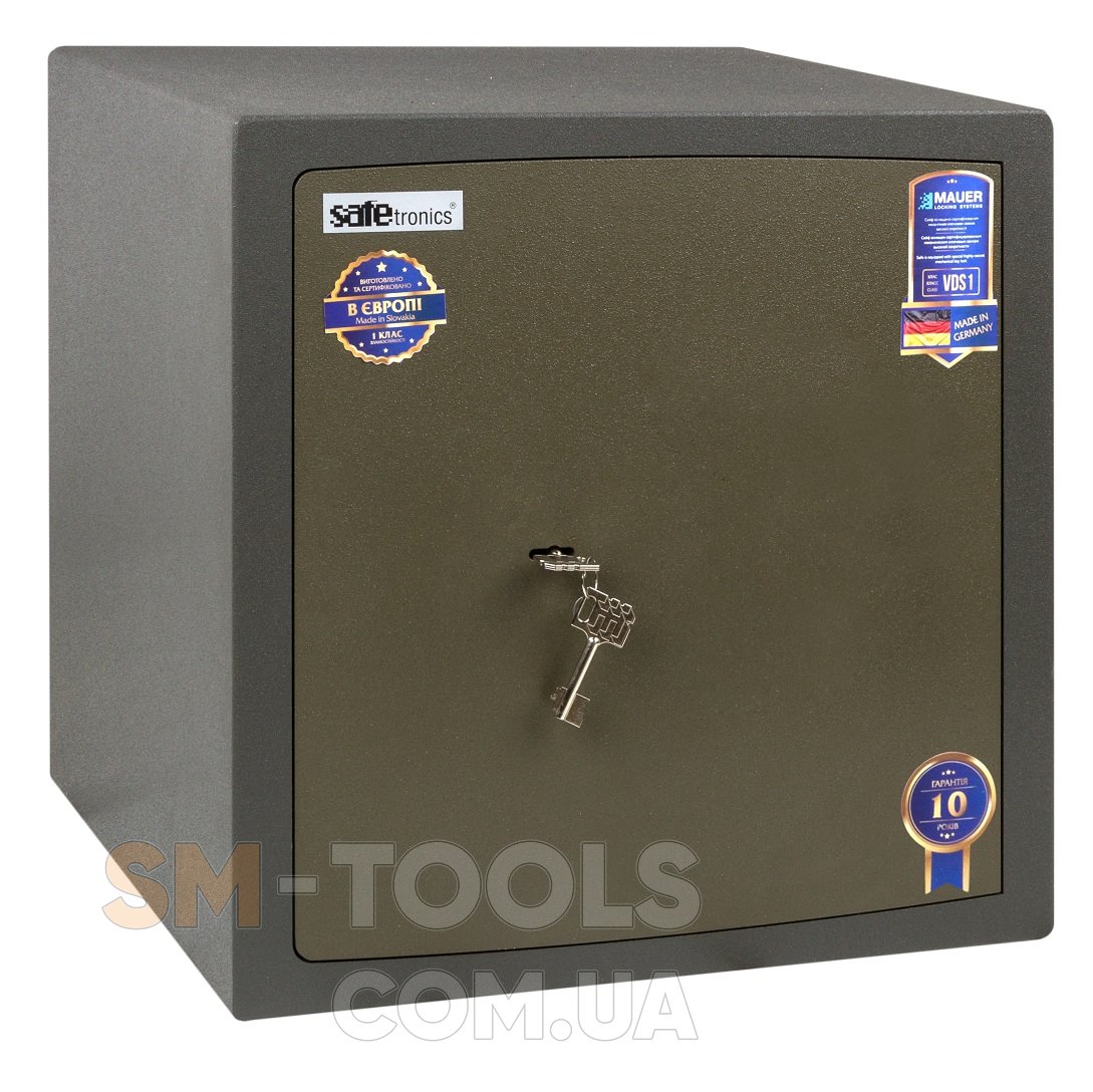 Взломостойкие сейфы Safertonics серии NTR сертифицированы по европейскому стандарту EuroVDS (Германия), чешскому CSN-9160010 и российскому ГОСТ Р-50862-96 - 1 классу защиты от взлома. Толщина лицевой панели составляет 10мм. Корпус состоит из двух частей: внешний корпус изготавливается из металлического листа толщиной 3мм, внутренний - из металлического листа толщиной 2мм, между которыми находится несколько слоев наполнителя (SMREKOLIT), толщиной 20мм. Благодаря этому, данная серия сейфов соответствуют 1 классу защиты от взлома и обеспечивают начальную защиту от пожара. Взломостойкие сейфы оснащаются кодовыми механическими замками LA GARD (США), ключевыми MAUER (Германия), электронными замками SAFEtronics (Словакия). Область замка сейфов защищена двумя пластинами из маргонцевистой стали, защищающими замок сейфа от высверливания.