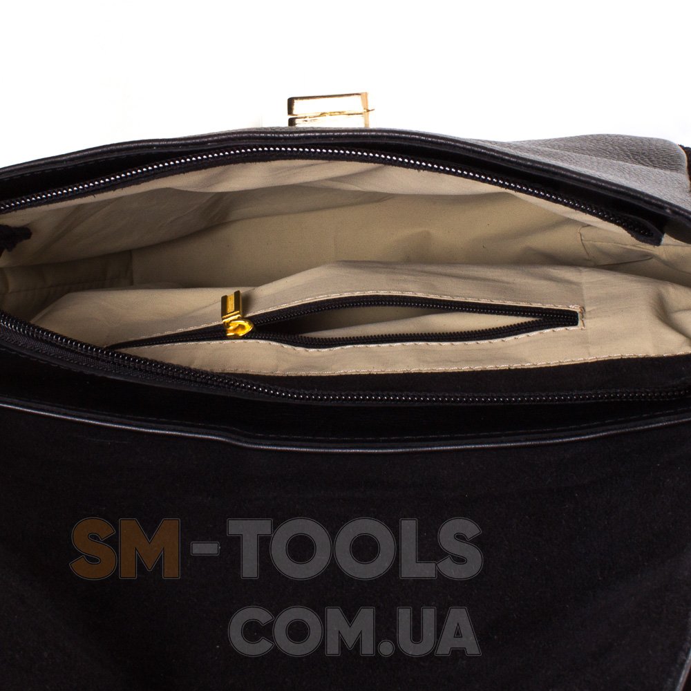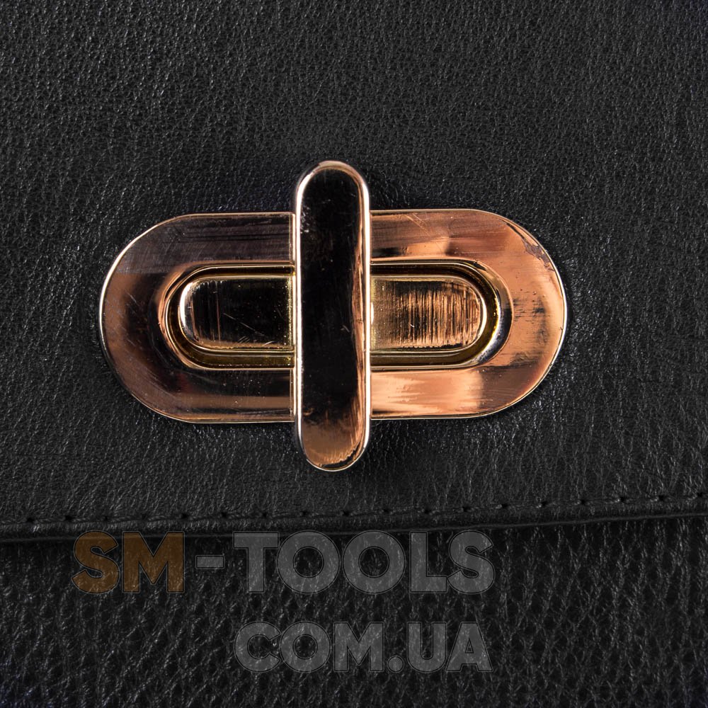Закрывается сумка при помощи молнии, а также клапана на механической поворотной застежке.