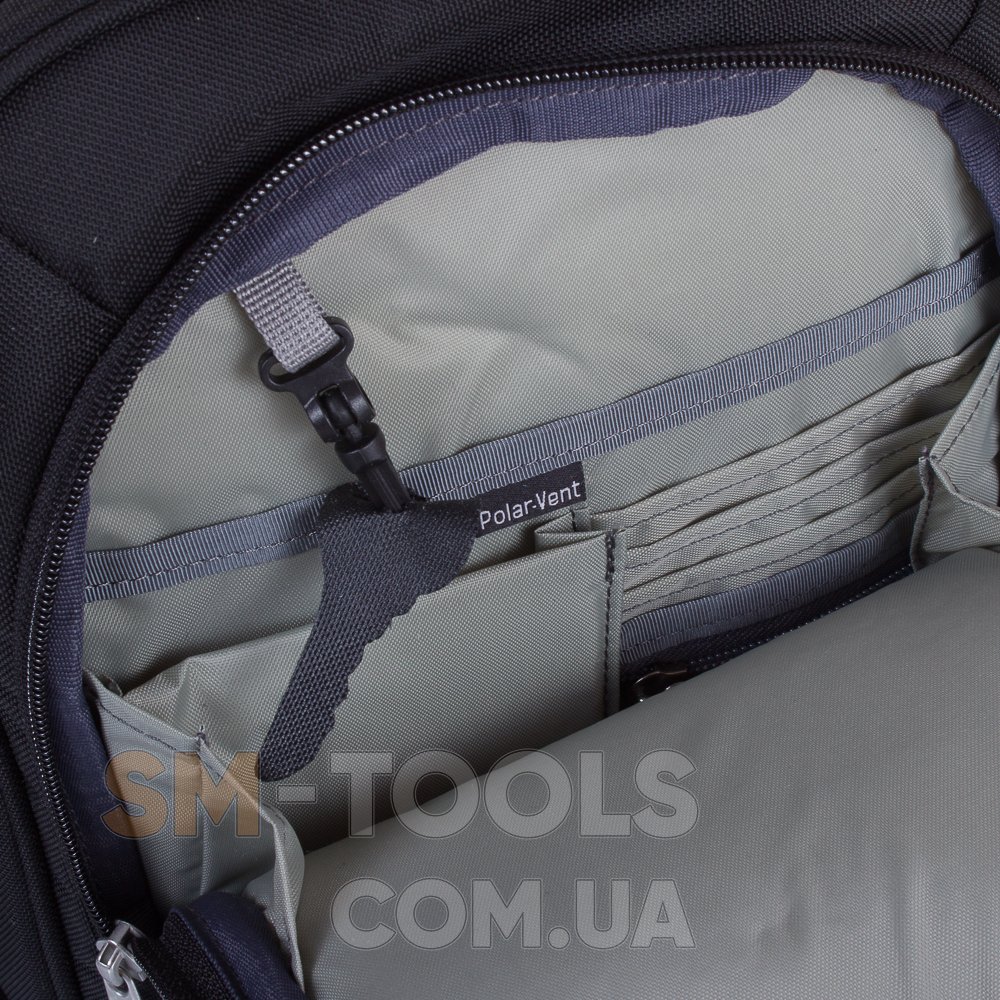 Дополнительные отделения: 1. Внутри него есть большой накладной карман, органайзер для мелочей (включает 4 мелких накладных кармашка, один накладной карман с уплотненными стенками, прорезной карман-сетку на молнии), а также карабин-ключница на прочной ленте.