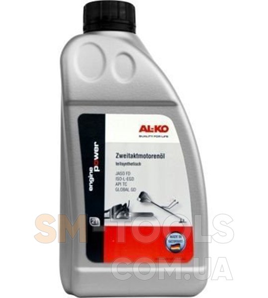 Масло для 2-х тактных двигателей JASO FD, ISO-L-EGD, API TC, GLOBAL GD, полусинтетическое, 1 литр. Рекомендуется для мототриммеров, бензопил и другой садовой техники AL-KO.