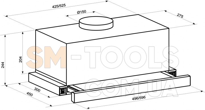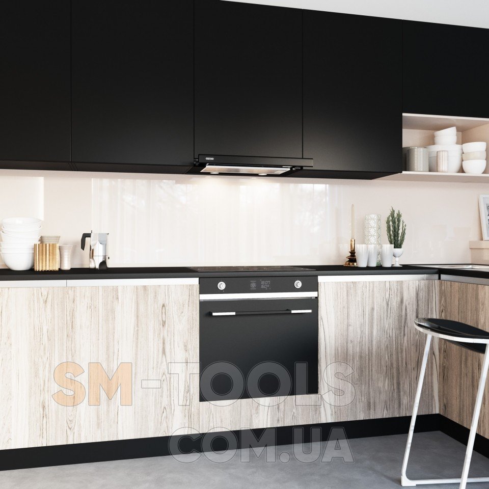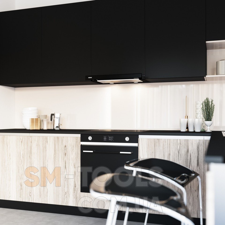 Storm 1200 LED SMD 60 BL - встроенная вытяжка, которую можно интегрировать в абсолютно любой дизайн, а выдвижная панель обеспечит дополнительное втягивания и управления режимами вытяжки.