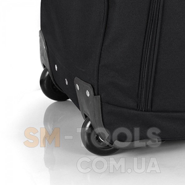 Сумка оснащена парой надежных роликовых колес. Колеса изготовлены из высокотемпературного термопластичного полиуретана (TPU). Материал обладает прочностью сравнимой с пластиком, гибкостью силикона, а так же имеет повышенную устойчивость к перепадам температур. Отличительной особенностью колес из TPU материала является снижение шума до минимума при качении чемодана по неровной поверхности. Благодаря устойчивости к истиранию материал колес отличается длительным сроком эксплуатации.