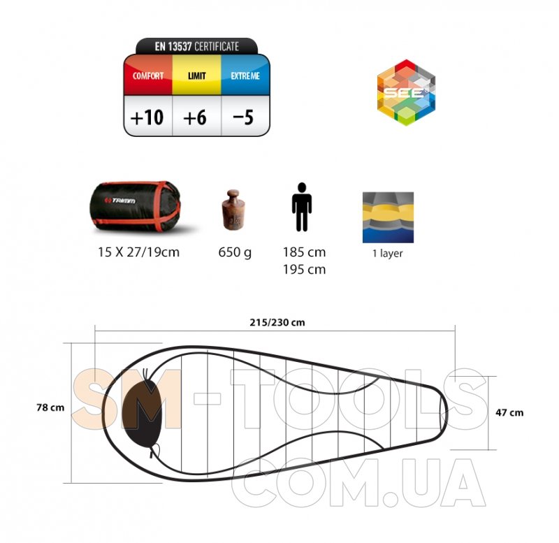 Характеристики Спальник Trimm CYKLO Sea Blue/Mid. Blue 185 R: