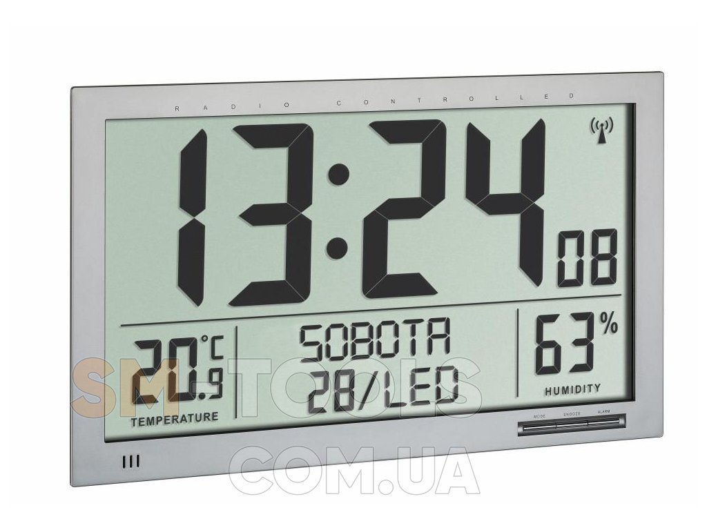 Настенные часы, оснащенные термометром и гигрометром TFA 60.4517.54, подходят для любого офиса, школы и других больших помещений. На большом и четком дисплее отображаются время, дата, день недели (на 10 языках), а также температура и влажность в помещении с четко различимыми цифрами. Часы и дата контролируются сигналом DCF. Устройство можно повесить на стену или разместить на горизонтальной подушке, поскольку она оборудована подставкой.