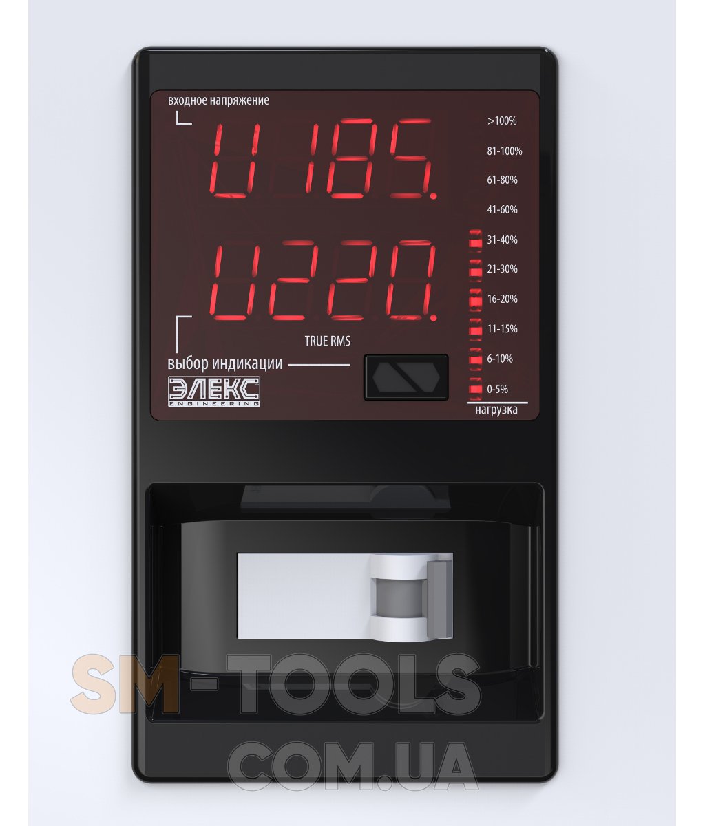 Отличительной особенностью данного стабилизатора от других серий является наличие на лицевой панели двух LED-индикаторов и линейного индикатора загрузки. Для фильтрации высокочастотных и радио помех в данном стабилизаторе установлены дроссели как на входе, так и на выходе. Также добавлена функция ручной подстройки нижнего порога отключения стабилизатора (60-135В) и выходного стабилизированного напряжения (200-230В), что делает этот аппарат очень гибким в настройке для питания нестандартного оборудования и в условиях сильных просадок напряжения питающей сети.