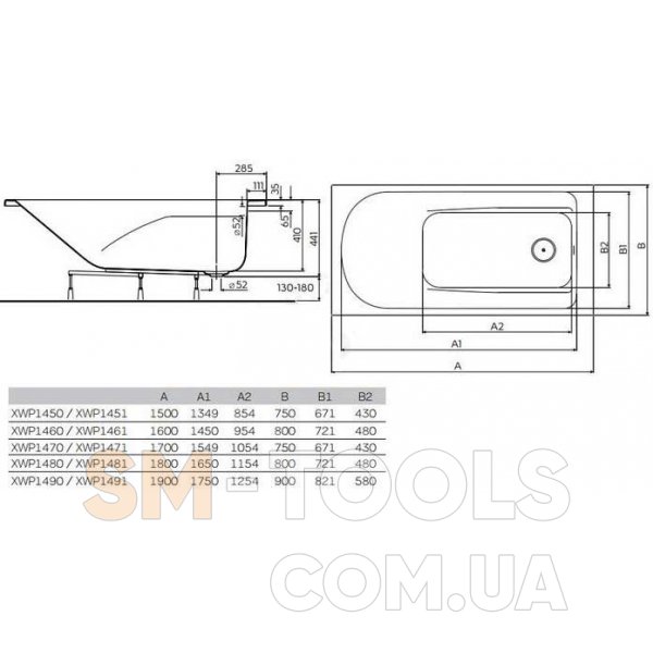 Ванна Kolo Comfort Plus (XWP1470000) поставляется без ручек, подголовника и сиденья.