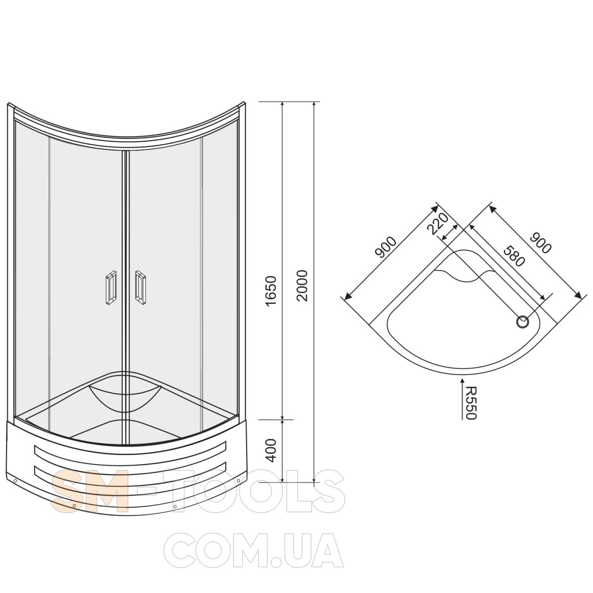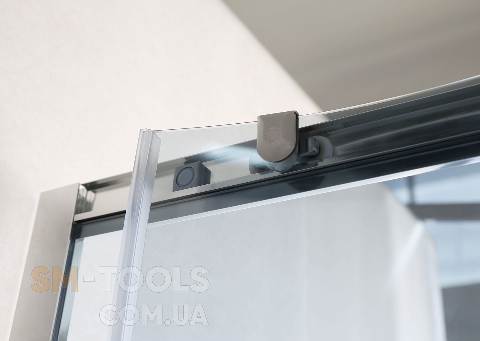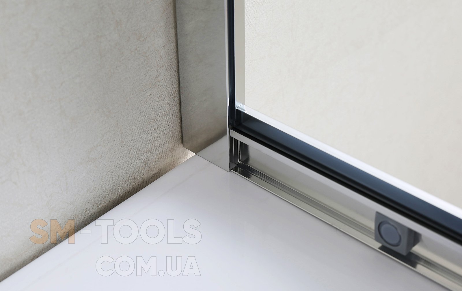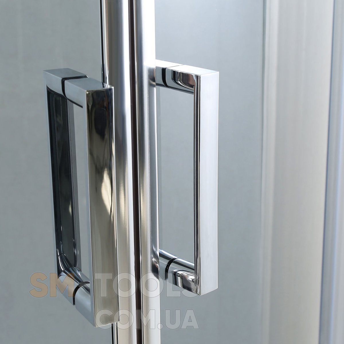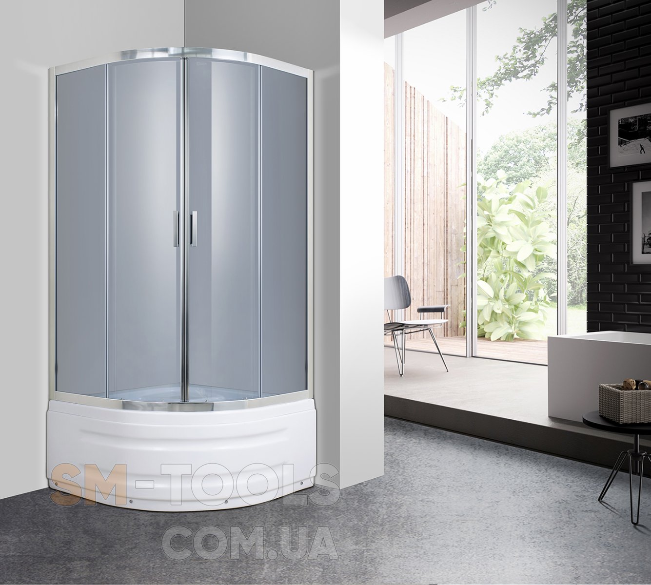 MAGRIT душова кабіна 900*900*2000 мм, на глибокому піддоні 40 см, профіль хром, розсувні двері, скло тоноване 6 мм, внутрішня глибина піддону 26 см, діаметр зливного отвору 50 мм.