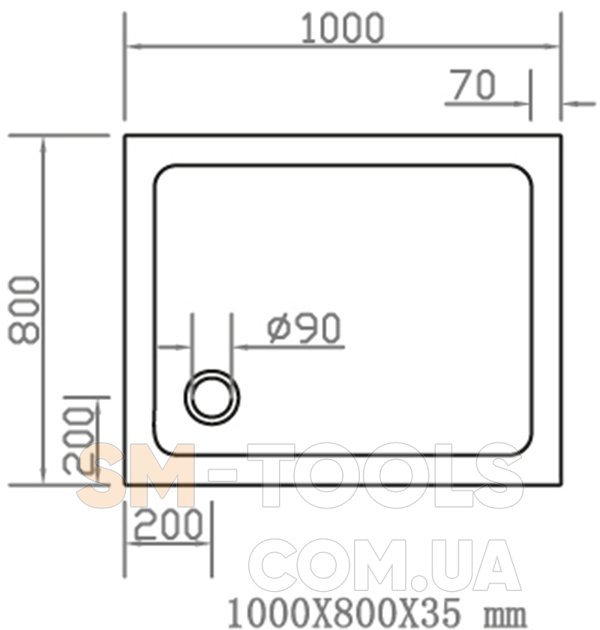 Прямоугольный душевой поддон SMC 599-1080S от венгерской компании Eger размером 100 х 80 х 3.5 см.