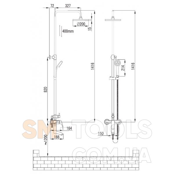 Комплектация душевой стойки С изливом, С верхним душем, С ручным душем, Наружный смеситель