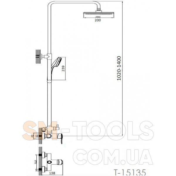 Комплектация душевой стойки Без излива, С верхним душем, С ручным душем, Наружный смеситель