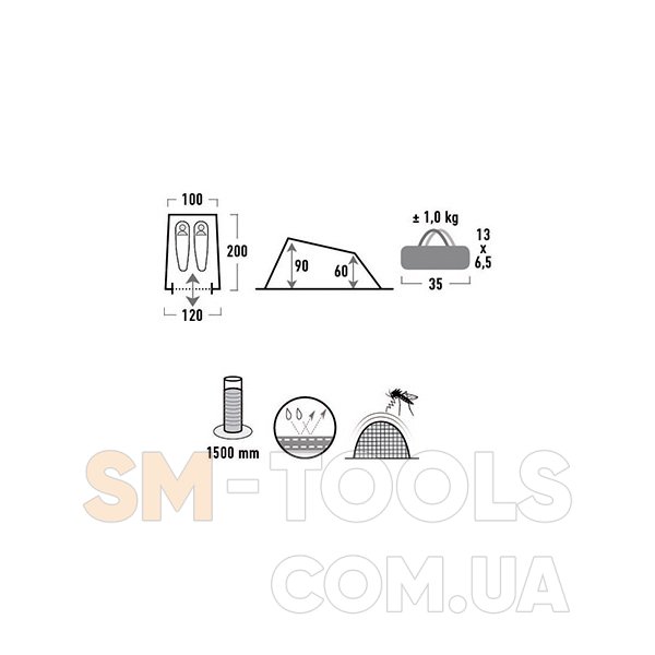 Габариты внешней палатки (ДхШхВ), мм: 2000x1200x900