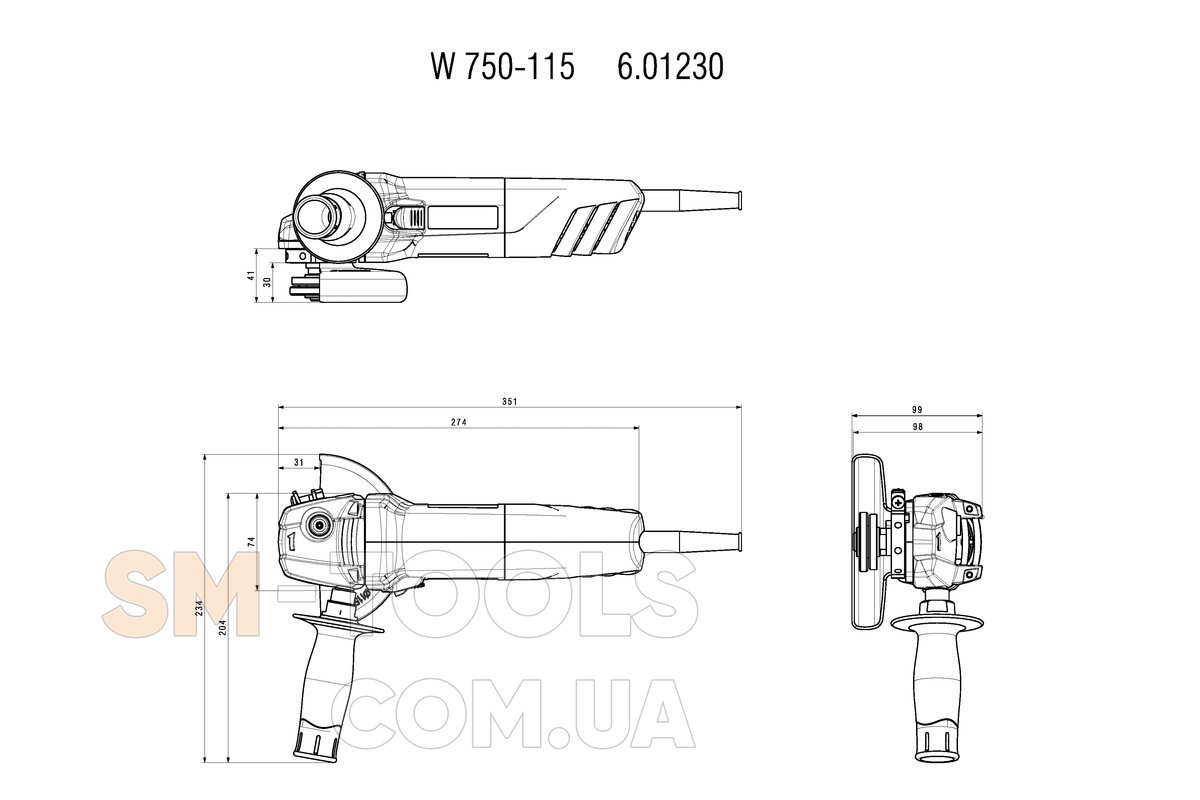 Характеристики Угловая шлифмашина Metabo W 750-115 (601230010):