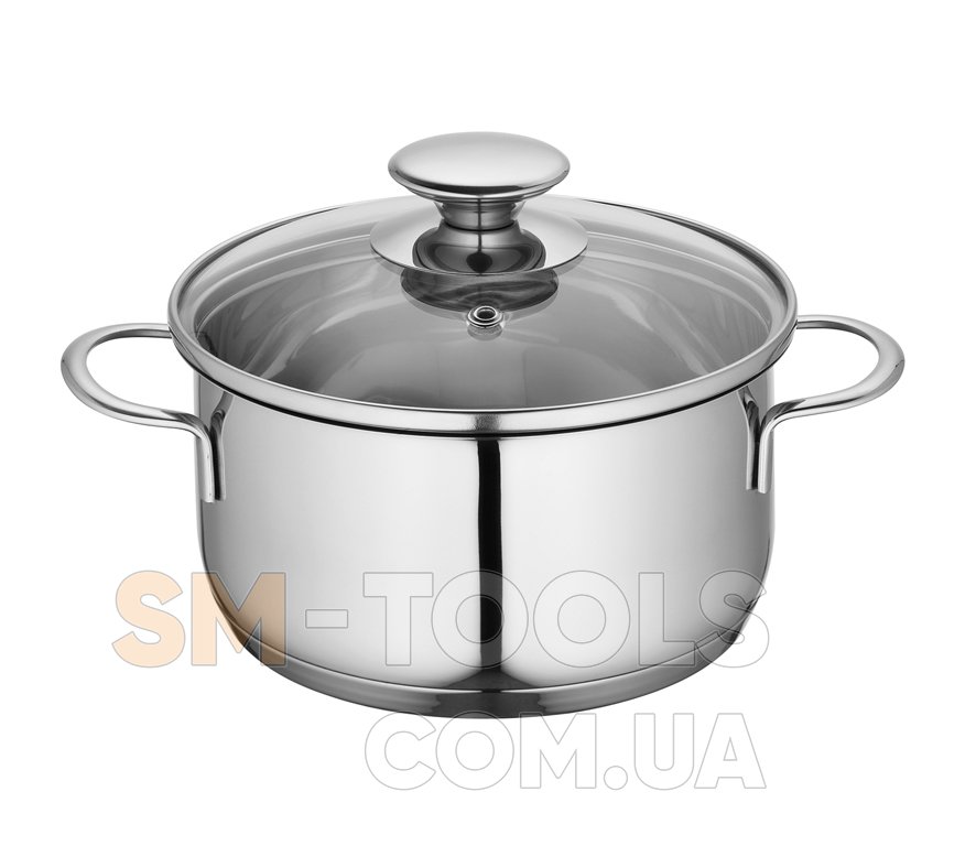 Стеклянная крышка с металлической ручкой имеет отверстие для пара.