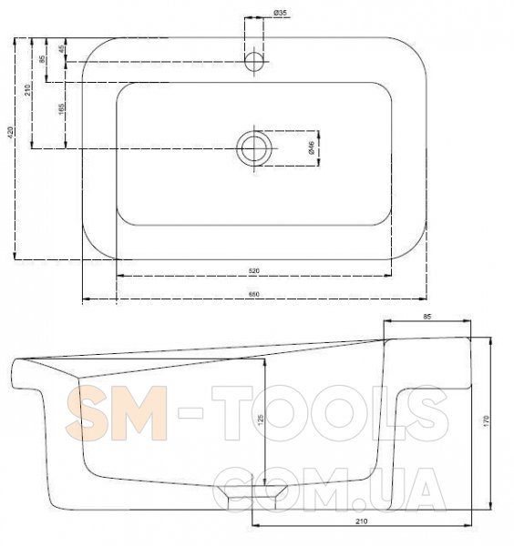 COCKTAIL умивальник прямокутний 65 см, що вбудовується на стільницю, Reflex