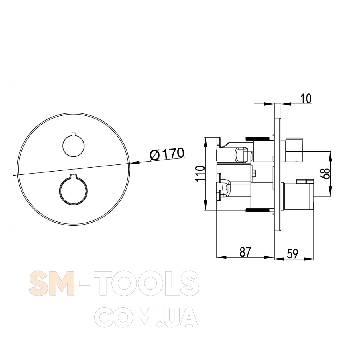 Комплектація вбудованого змішувача Зовнішня та прихована частини