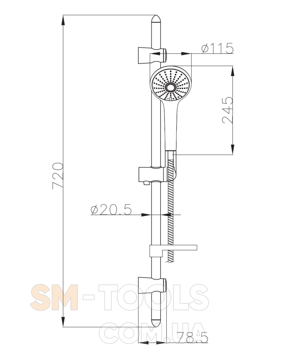 душевая штанга - высота 720 мм, диаметр 25 мм