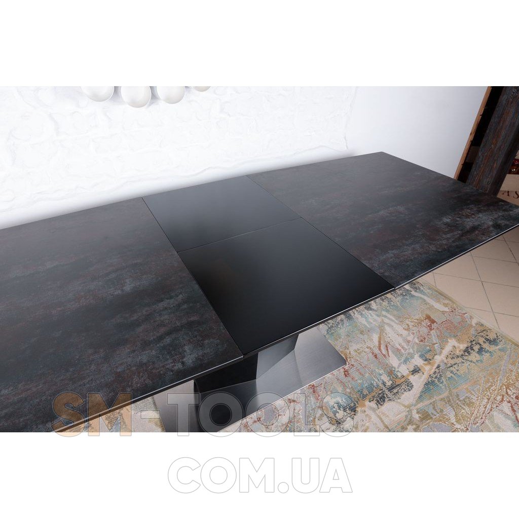 Чтобы разложить стол, нужно раздвинуть столешницу и достать две вставки посередине. Ширина дополнительной вставки - 50 см. Панели сделаны из МДФ. Детали раздвижного механизма сделаны из металла и рассчитаны на длительный срок эксплуатации.