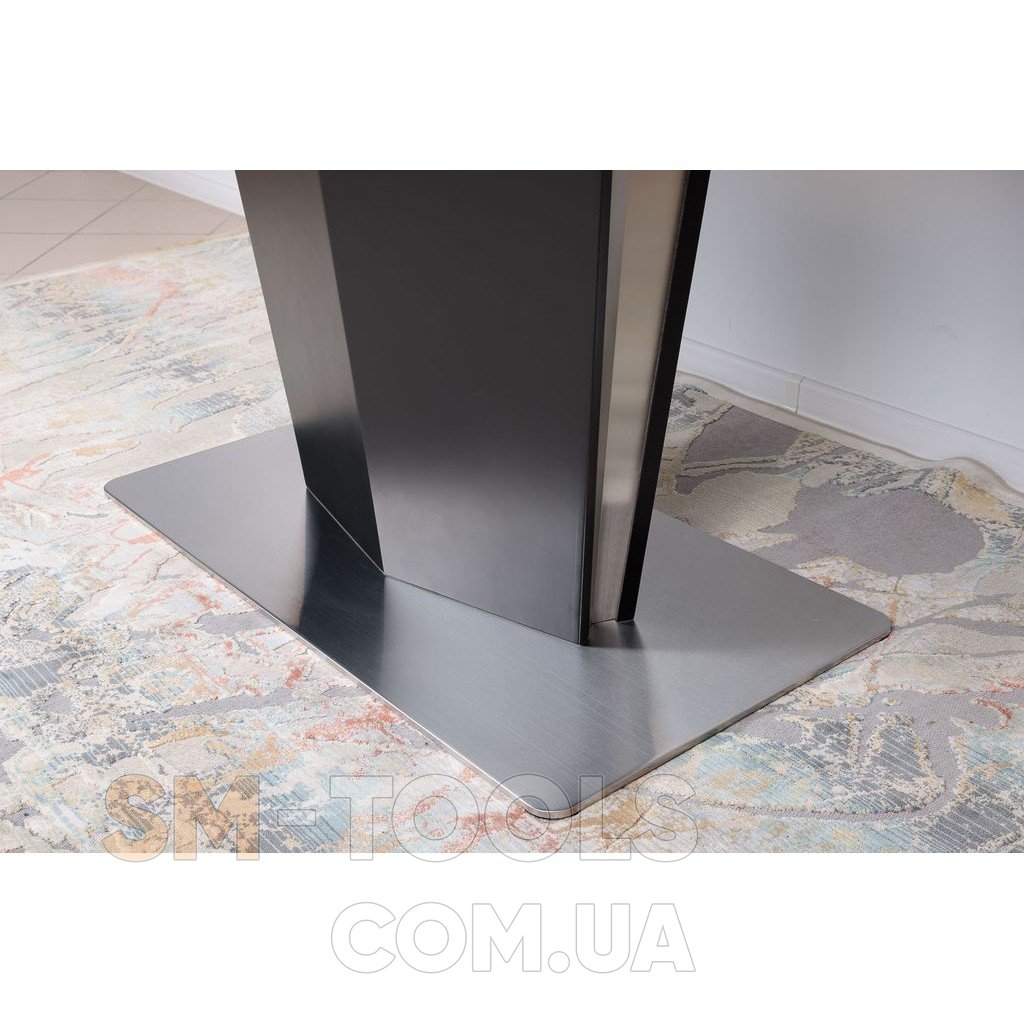 Ножка в виде пьедестала сделана из высококачественного МДФ на основании из полированной нержавеющей стали. Имеет необычную ромбовидную форму. Ножка декорирована вертикальной металлической полосой.
